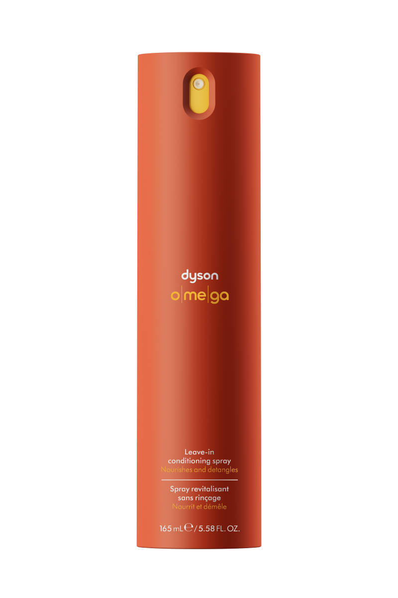 Natychmiastowe odżywienie, długotrwałe wzmocnienie.2 Odżywka w sprayu bez spłukiwania Dyson Omega™ natychmiast wygładza, odżywia i pielęgnuje włosy, ułatwiając ich rozczesywanie włosów i redukując łamliwość na wszystkich rodzajów włosów.1