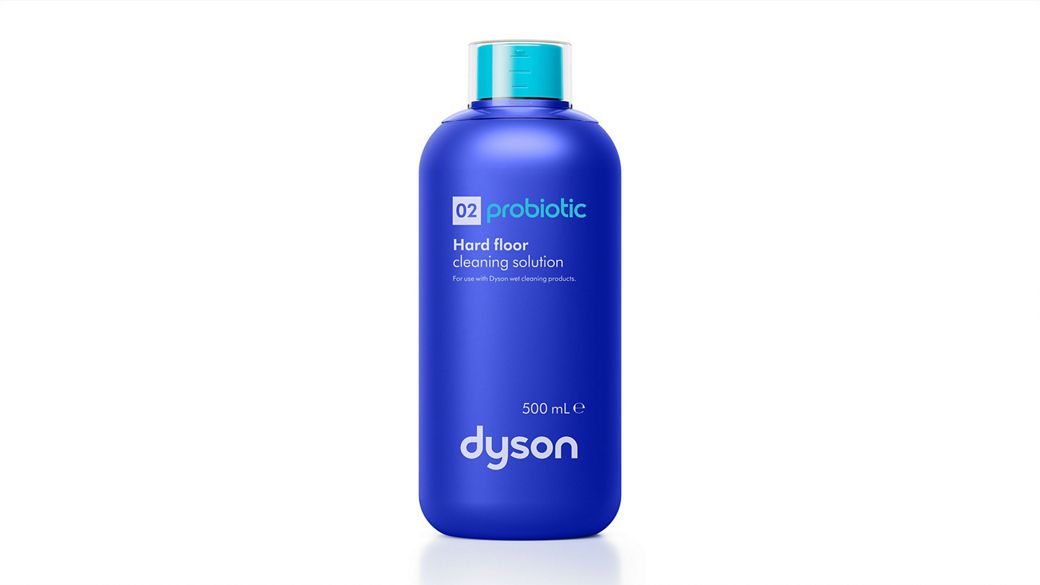 Probiotyczny płyn do mycia podłóg Dyson 02 Probiotic wspomaga i wzmacnia efekt cyklu samoczyszczenia Dyson, usuwając brud i nieprzyjemne zapachy z wewnętrznych rur, zbiorników i rolek z mikrofibry, przy jednoczesnym myciu podłóg.