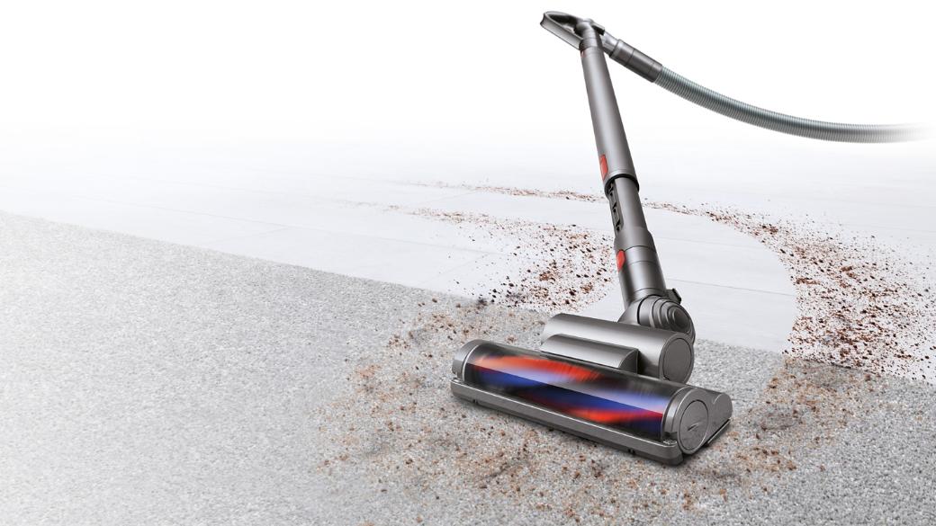 Wałki obracające się w przeciwnych kierunkach zapobiegają plątaniu się i usuwają włosy z dywanów oraz tapicerki.
