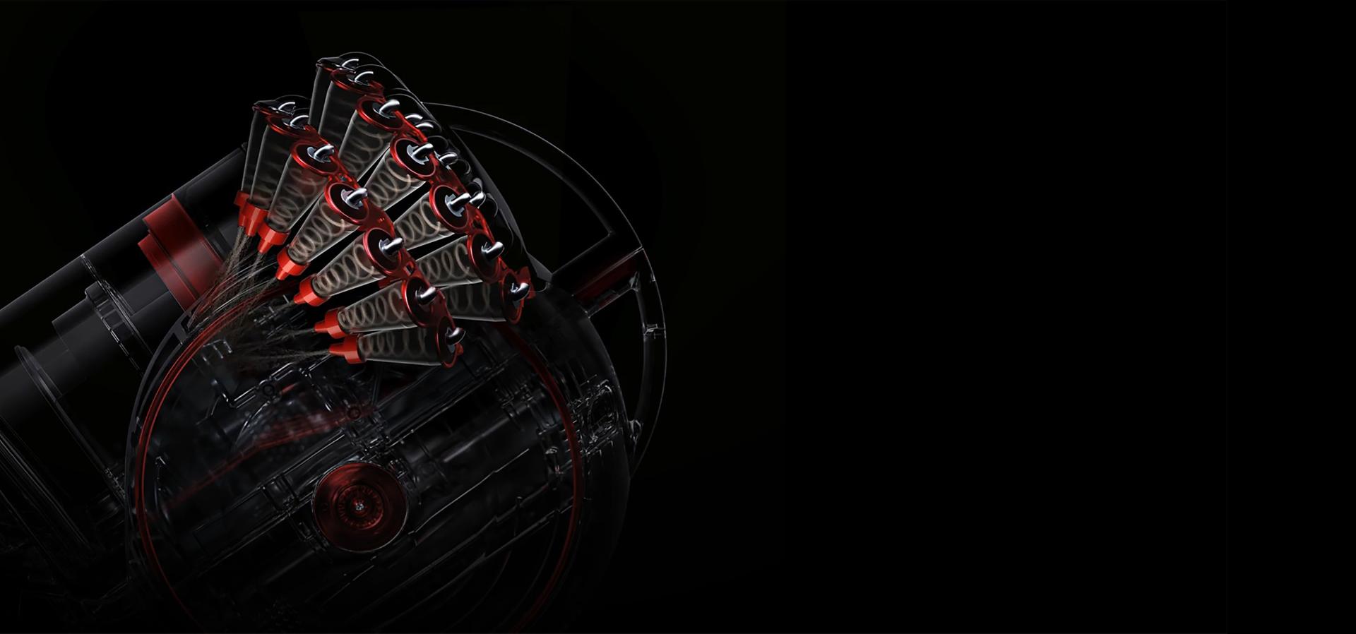Wyłapuje ona mikroskopijny kurz, który zatyka inne odkurzacze - nie ma konieczności mycia lub wymiany żadnych brudnych filtrów. 36 końcówek Dyson Cinetic™ oscyluje z częstotliwością do 5000 Hz, chroniąc obieg powietrza przed namnażaniem się kurzu i zatykaniem. Co oznacza, że siła ssania nie spada, rok po roku.