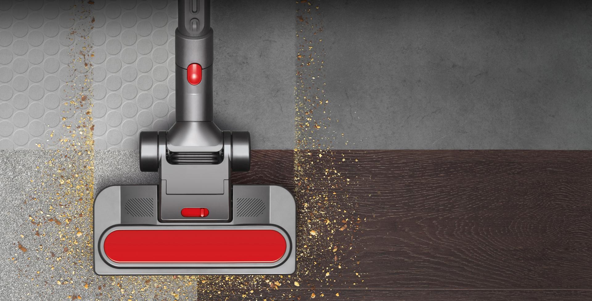 Rozpoznanie rodzaju powierzchni sprawia, że podstawa ssawki automatycznie obniża się lub podwyższa, aby zapewnić optymalny poziom ssania.