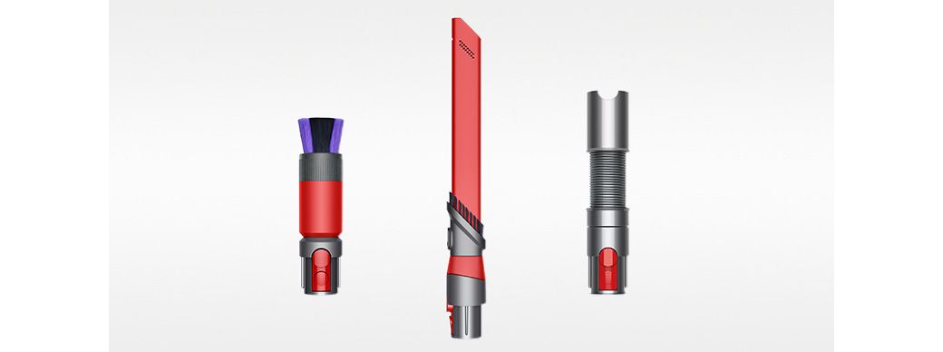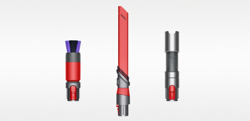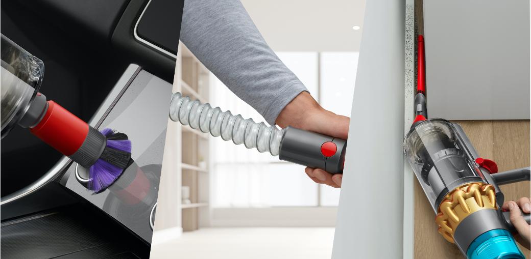 Zestaw akcesoriów zaprojektowany przez inżynierów Dyson do czyszczenia delikatnych powierzchni i trudno dostępnych miejsc w domu lub samochodzie